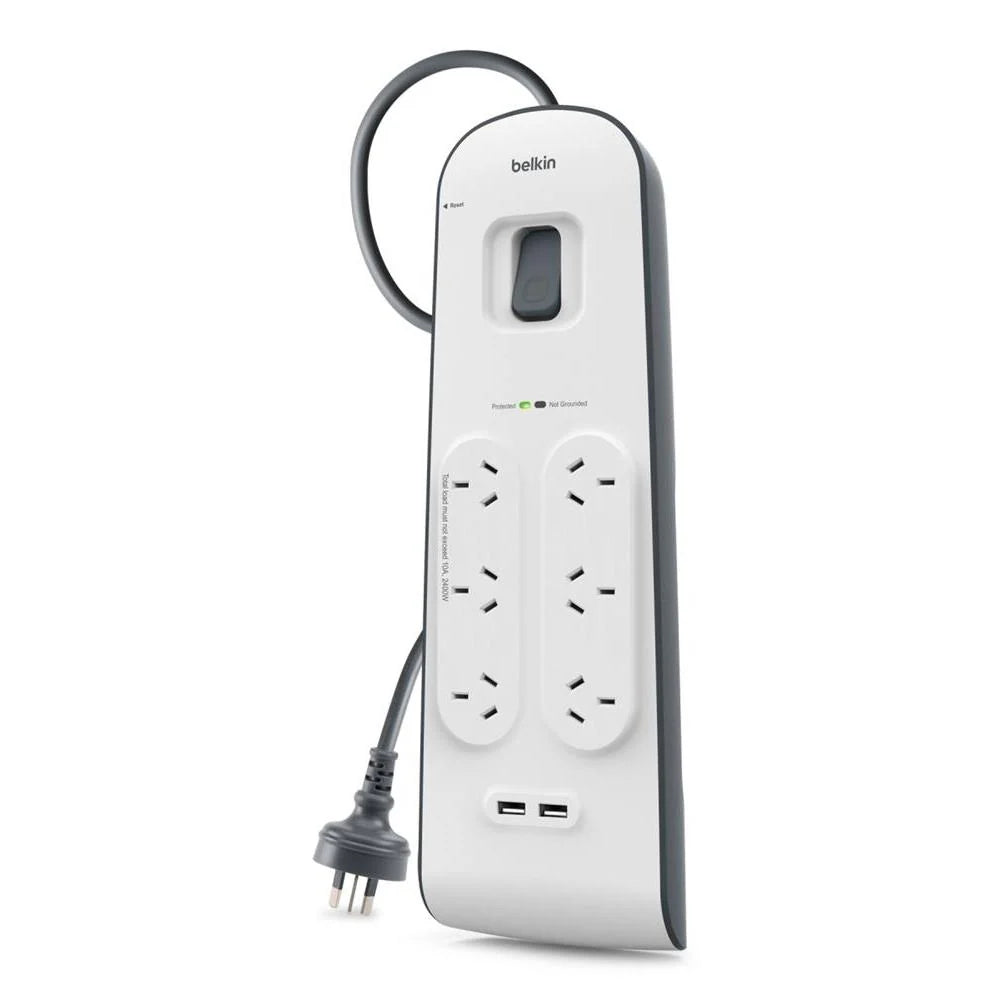 Belkin 6-outlet Surge Protection Strip with 2M Power Cord |White/Grey|