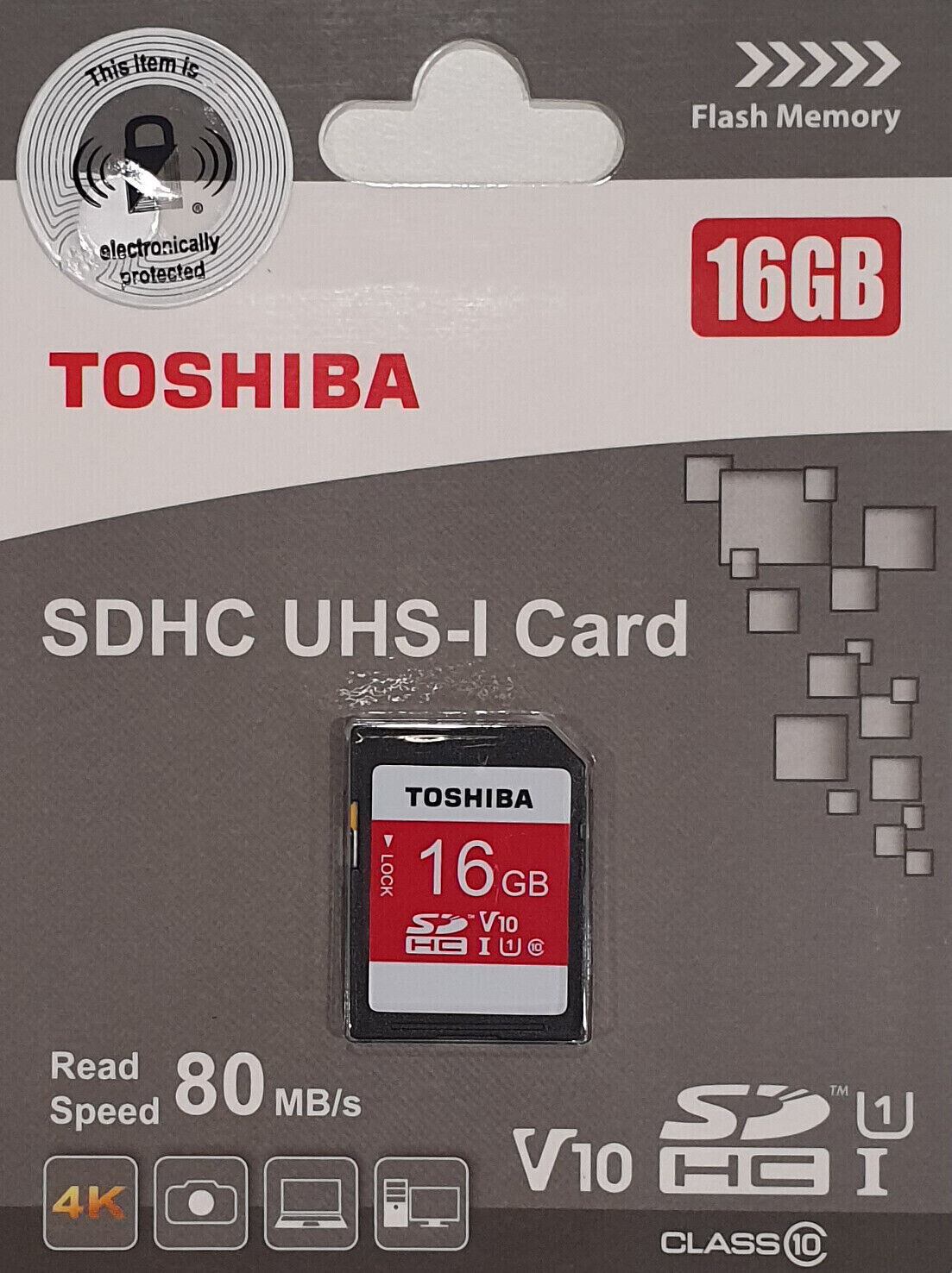 Toshiba 16GB SDHC Memory Card UHS-I SD 80MB/s Class 10 U1 V10 PA5310A-2DAG